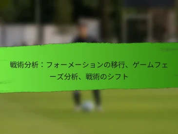 サッカーにおける戦術分析は、フォーメーションの移行、ゲームフェーズの分析、戦術的シフトといった重要な側面を含みます。これらの要素は、チームが試合の動的な性質に適応し、相手に効果的に対応し、全体的なパフォーマンスを最適化するために不可欠です。チームがこれらの移行をどのようにナビゲートするかを理解することは、彼らの戦略的効果とフィールド上での適応力について貴重な洞察を提供します。 戦術分析におけるフォーメーションの移行とは何ですか? 戦術分析におけるフォーメーションの移行は、試合中にチームが異なるフォーメーション間で行うシフトを指します。これらの移行は、ゲームの流れに適応し、相手の戦術に対応し、チームのパフォーマンスを最適化するために重要です。 フォーメーションの移行の定義 フォーメーションの移行は、チームが戦術的なセットアップを変更し、フィールド上の選手の配置を変更する際に発生します。これは、ゲームの状況に応じて、防御的なフォーメーションから攻撃的なフォーメーションに移行することや、その逆を含むことがあります。これらの移行を理解することは、チームがリアルタイムで戦略をどのように適応させるかを分析するために不可欠です。 一般的に、これらの移行は、プロアクティブとリアクティブの2つの主要なタイプに分類されます。プロアクティブな移行は、コーチが相手のフォーメーションの特定の弱点を利用するために計画された変更であり、リアクティブな移行は、攻撃をカウンターするなど、相手の行動に対する反応です。 ゲームプレイにおけるフォーメーションの移行の重要性 フォーメーションの移行は、試合中の戦術的柔軟性を維持するために重要です。これにより、チームは攻撃中、防御中、またはその間の移行中の現在のプレイフェーズに基づいてアプローチを調整できます。この適応力は、試合の結果に大きな影響を与える可能性があります。 さらに、効果的なフォーメーションの移行は、相手に対するミスマッチを生み出し、得点機会や防御の安定性をもたらすことができます。これらの移行をマスターしたチームは、オープニングを利用し、脆弱性を最小限に抑えることができるため、競争上の優位性を持つことが多いです。 一般的なフォーメーションの移行の種類 防御から攻撃へ: 4-4-2のような防御に重点を置いたフォーメーションから、攻撃の可能性を高めるために4-3-3のようなより攻撃的なセットアップに移行します。 攻撃から防御へ: リードを守るために、3-4-3から5-4-1のようなより防御的なフォーメーションに移行します。 流動的な移行: …