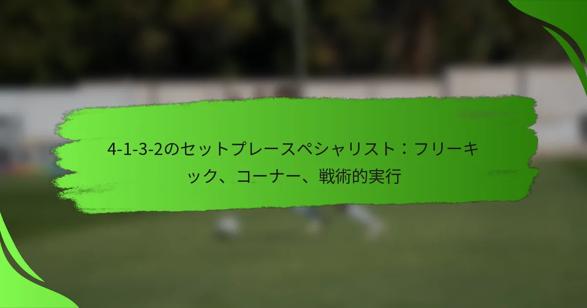 4-1-3-2フォーメーションにおいてセットプレーのスペシャリストに最適な選手は、通常、強力な技術スキル、戦術的な意識、プレッシャーの中でパフォーマンスを発揮する能力を持っています。これらの特性により、フリーキックやコーナーキックを効果的に実行し、試合の結果に大きな影響を与えることができます。