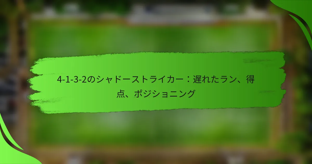 4-1-3-2フォーメーションにおけるシャドーストライカーは、メインストライカーのすぐ後ろに位置し、遅れてのランニングや得点機会に焦点を当てる重要な役割を果たします。ボックスへの侵入タイミングをうまく調整することで、守備の隙間を突き、守備陣を驚かせる予期しないチャンスを生み出すことができます。効果的なポジショニングとプレーの予測は、攻撃フェーズでの影響を最大化するために不可欠です。