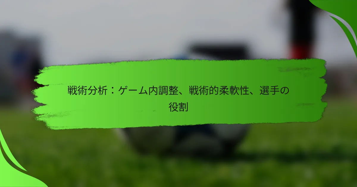 スポーツにおける戦術分析は、試合の進行に応じてコーチや選手が行う重要なゲーム内調整に焦点を当てています。戦術的柔軟性を強調することで、チームはリアルタイムで戦略を修正し、相手に対抗し、弱点を突く能力を高めることができます。さらに、これらの枠組み内での主要な選手の役割を理解することは不可欠であり、各個人の貢献がチーム全体のパフォーマンスとフィールドでの効果に直接影響を与えます。
