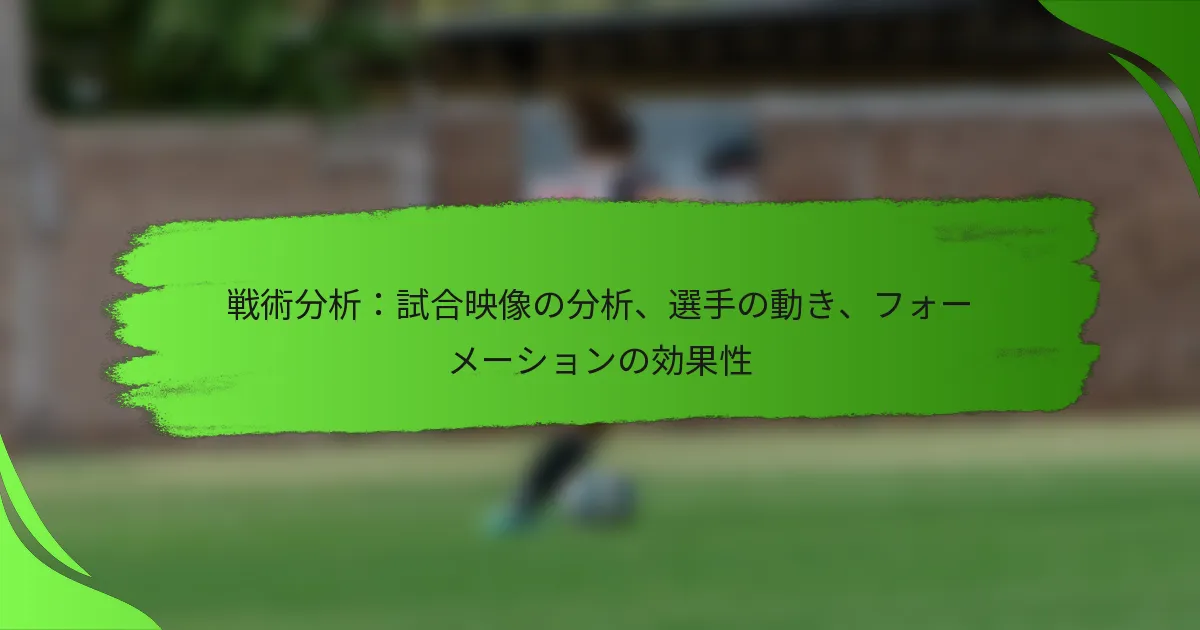 試合映像を効果的に分析するには、選手の動き、フォーメーション、試合の結果に影響を与える重要な瞬間を分析することに焦点を当てます。このプロセスには、体系的な観察、戦略の評価、分析を強化するための専門的なソフトウェアツールの使用が含まれます。