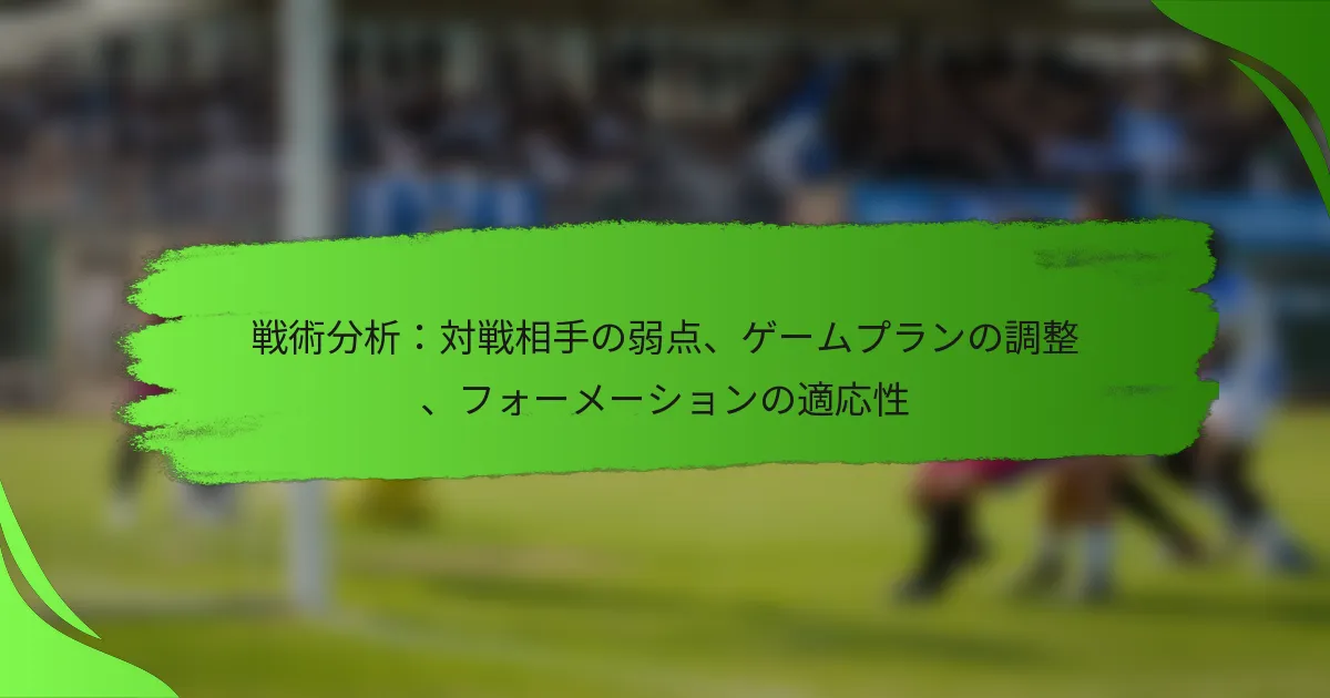 対戦相手の弱点を分析することは、戦術を効果的に調整するために重要です。対戦チームがさまざまなフォーメーションにどのように反応するかを観察することで、彼らの脆弱性についての洞察を得ることができます。例えば、対戦相手がハイプレスに苦しむ場合、より攻撃的なフォーメーションを実施することでより良い結果を得られるかもしれません。