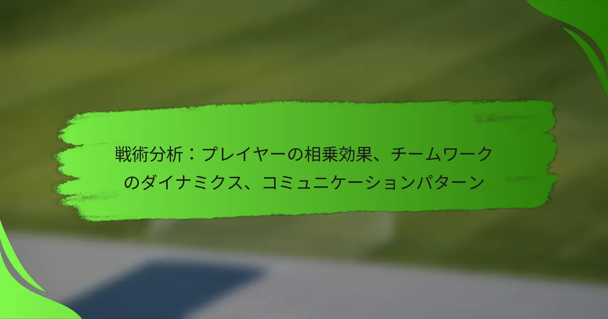 選手のシナジー、チームワークのダイナミクス、コミュニケーションパターンの戦術的分析は、チームがパフォーマンスを最適化する方法を理解するために不可欠です。選手がどのように協力し、コミュニケーションを取るかを調査することで、フィールド上での成功を高めるまたは妨げる重要な要因を特定できます。この分析は、チームメイト間の信頼と共通理解の重要性を強調するだけでなく、統一感のあるプレイを達成するための効果的なコミュニケーション戦略の影響も強調します。