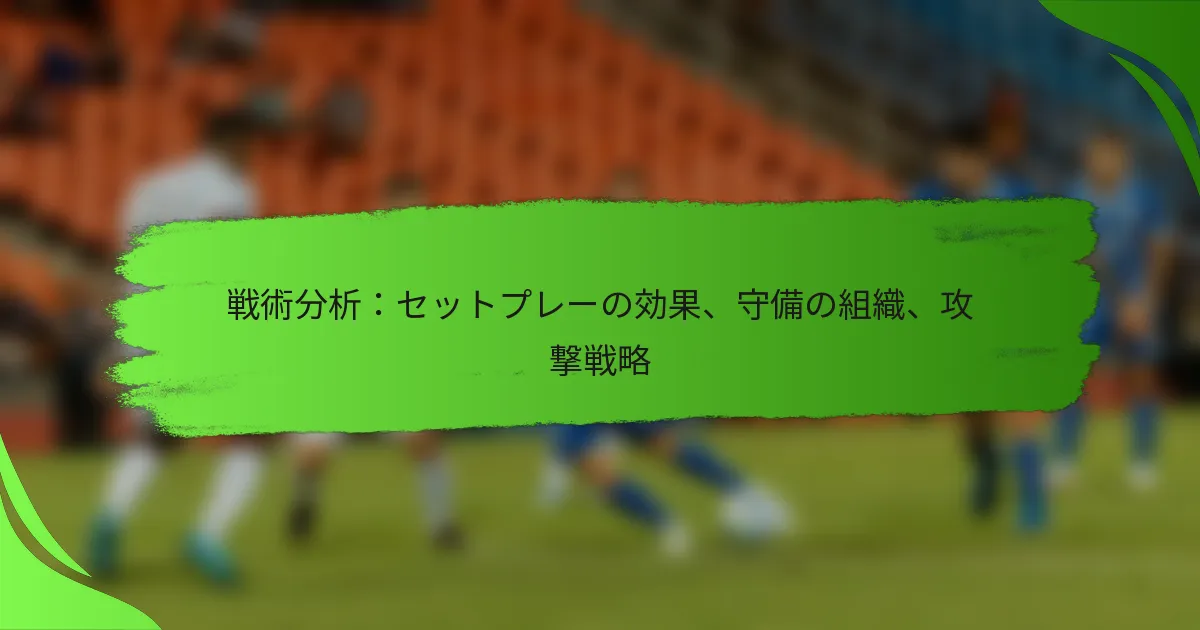 サッカーにおける戦術分析は、セットプレーの効果、守備の組織、攻撃戦略の3つの重要な要素を含みます。セットプレーの状況は得点の貴重な機会を提供し、守備の組織は構造化されたフォーメーションとコミュニケーションを通じてゴールを防ぐことに焦点を当てています。一方、効果的な攻撃戦略は、相手の弱点を突き、得点機会を生み出すための協調した動きと革新的な戦術を含みます。